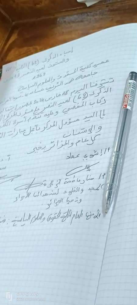 شارك اليوم 18 مارس 2024 ، طاقم كلية الحقوق والعلوم السياسية برئاسة عميد الكلية البروفيسور سوالم سفيان ، مرفوقا بمجموعة من طلبة نادي الفكر القانوني الاحتفال باحياء الذكرى (62) الثانية والستون لعيد النصر 19 مارس 1962 ، المنظمة على مستوى مركز الاعلام الاقليمي سوق أهراس الشهيد ركاب الحفصي ، الاحتفال بالذكرى عرفت عديد النشاطات ، حيث كانت الفرصة مواتية لاستذكار بطولات و كفاح وتضحيات الشعب الجزائري خلال الثورة التحريرية وصولا الى النصر .المجد والخلود لشهدائنا الأبرار.
