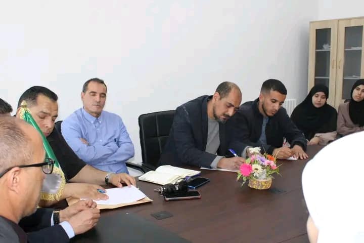جانبٌ من الإجتماع التَّنسيقي الخاصّ بالتَّحضير لمجموعة من النشاطات مُشْترَكة في قادم الأيام بين: كليَّة العلوم الإجتماعيَّة والإنسانيَّة وَكليَّة الحقوق والعلوم السِّياسيَّة، بحُضور عميدَيْ الكُلِّيَتيْن.