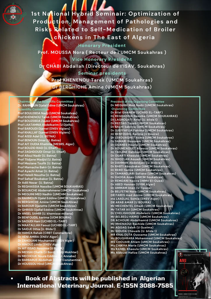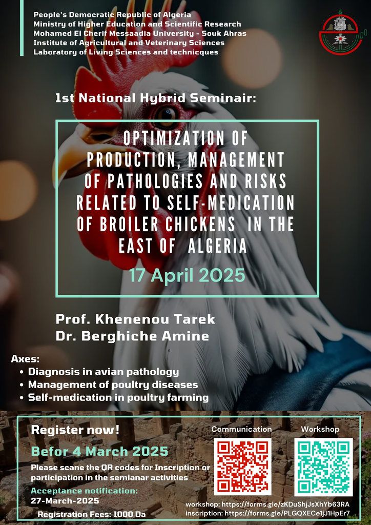 1st National Hybrid Seminair Optimization of : Production, Management of Pathologies and Risks Related to Self-Medication Of Baoiler Chickens In The East Of Algeria