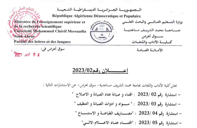 كلية الآداب واللغات » جامعـــة ســوق أهراس