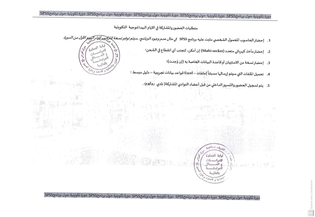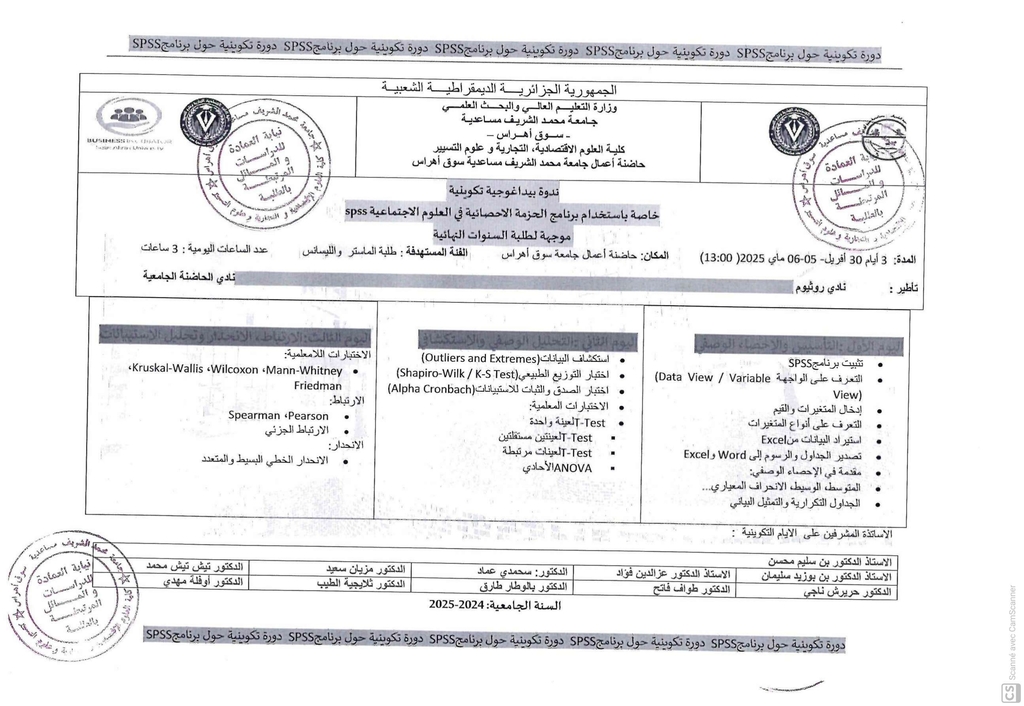 ندوة بيداغوجية تكوينية خاصة باستخدام برنامج الحزمة الاحصائية في العلوم الاجتماعية