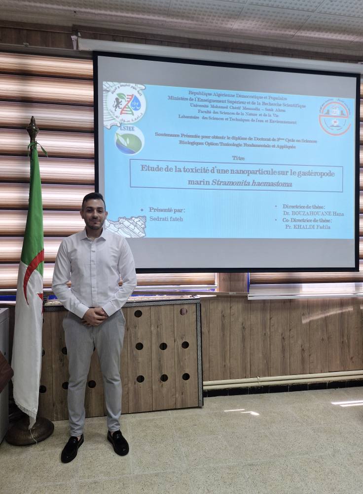 يضاف الى الرصيد العلمي لكلية علوم الطبيعة والحياة مناقشة أول أطروحة دكتوراه، تخصص علم السموم الأساسي والتطبيقي،دفعة 2022 من طرف الطالب الخلوق سدراتي فاتح،تحت إشراف الدكتورة بوزهوان هناء والبروفيسور خالدي فضيلة.