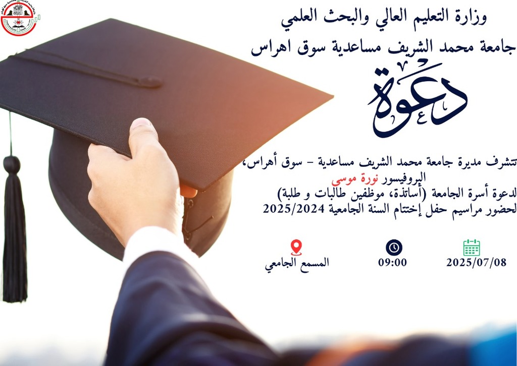 جــــامـعــة محــمــد الشــريف مسـاعــــدية - ســـوق أهــراس ⵜⴰⵙⴷⴰⵡⵉⵜ ⵎⵓⵃⴰⵎⵎⴰⴷ ⴰⵎⴰⵖⵓⴷ ⵎⵙⴰⵄⴷⵢⴰ ⵙⵓⴽⴰⵀⵔⴰⵙ |