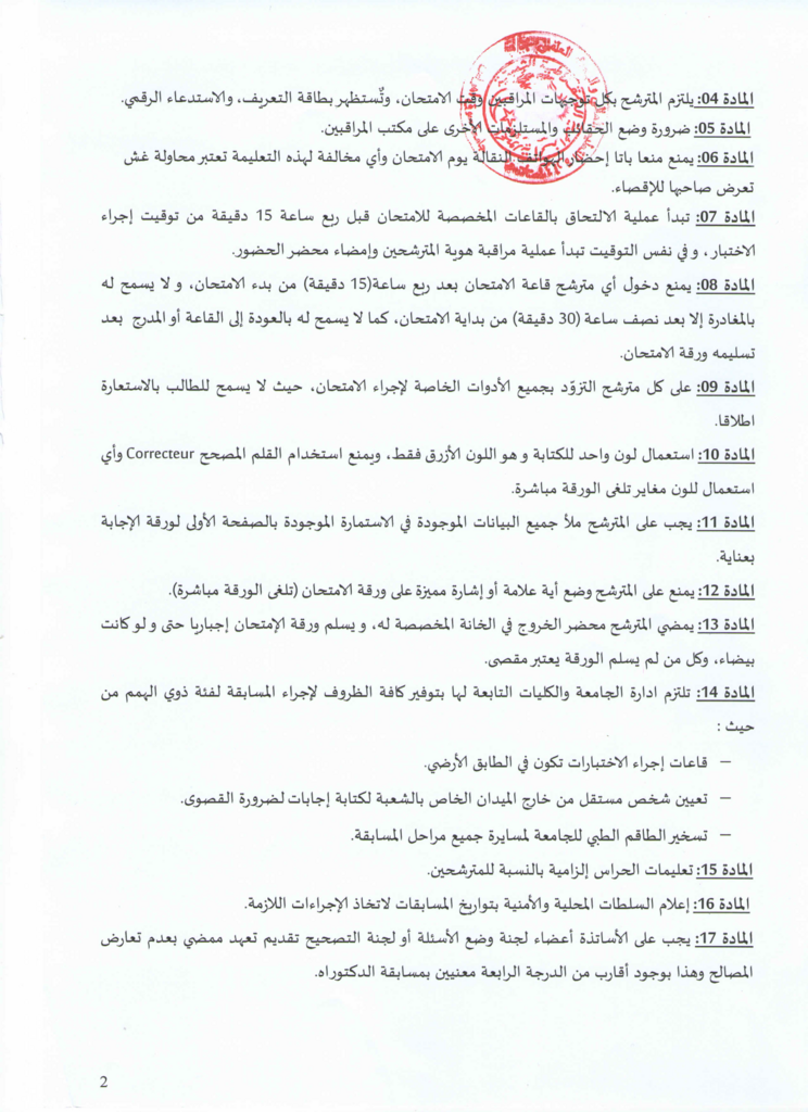 النظام الداخلي لسيرورة مسابقة الدكتوراه في الطور الثالث بعنوان السنة الجامعية 2024/2025