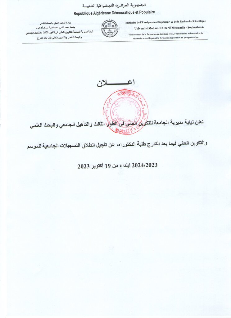 Mohamed Cherif Messaadia University - Souk Ahras Université Mohamed-Chérif Messaadia - Souk Ahras |