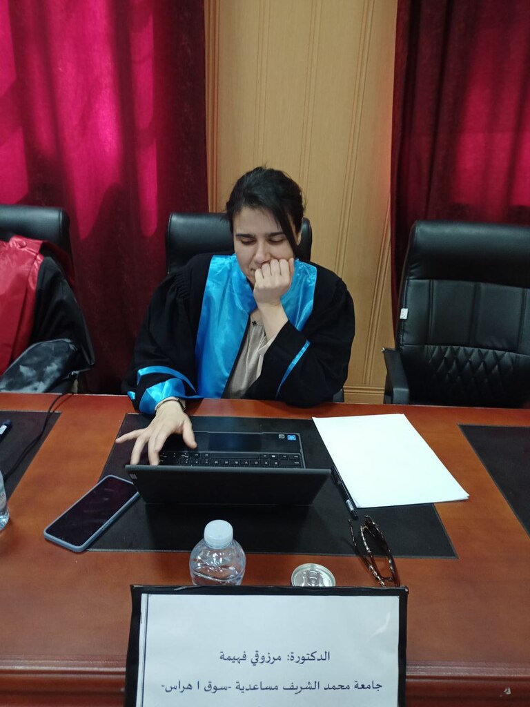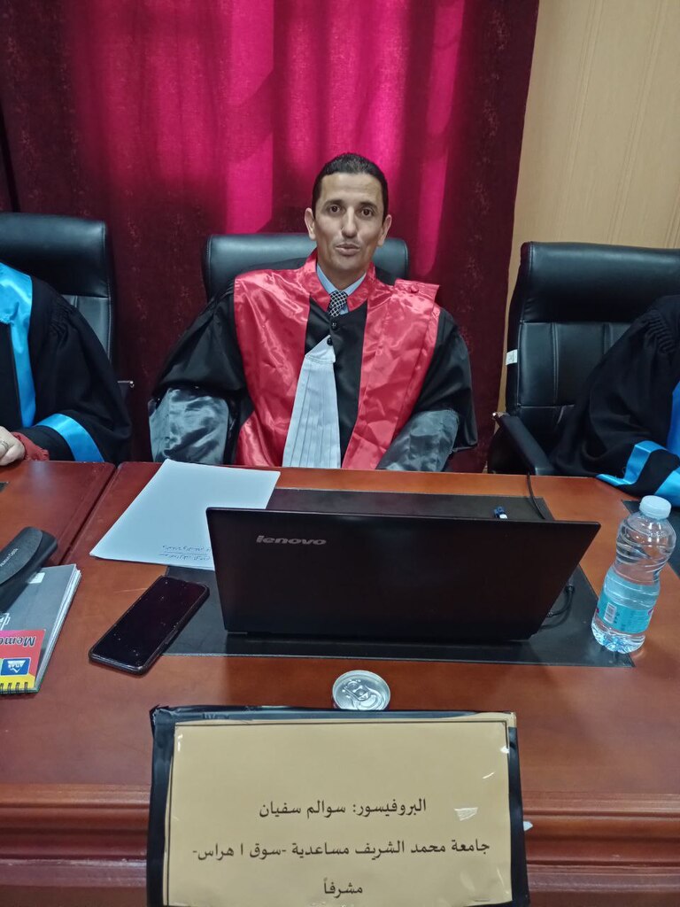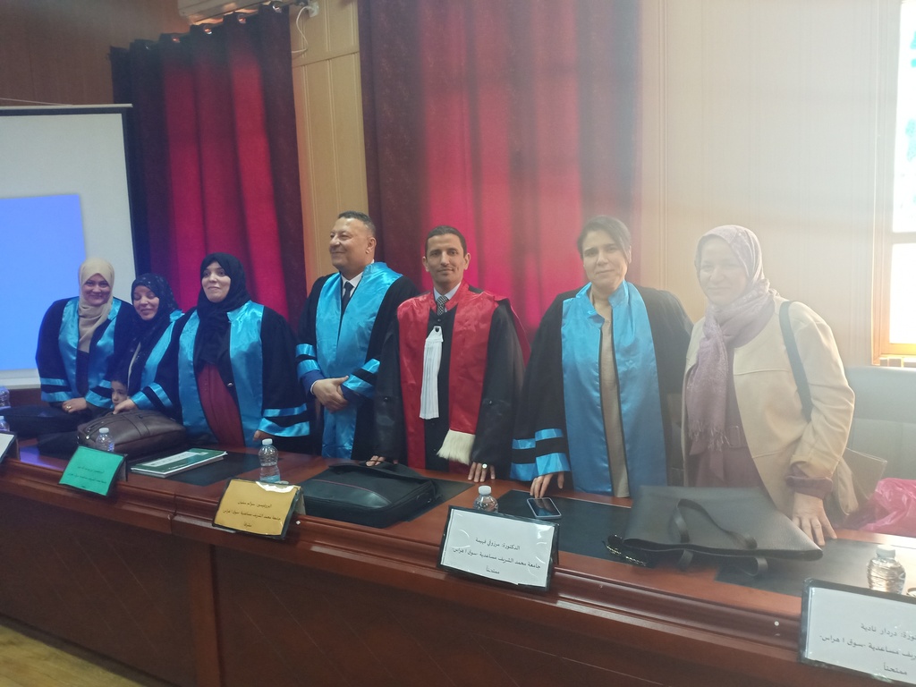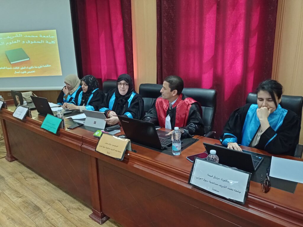تمت اليوم الأحد 28 أفريل 2024 بمقر المكتبة المركزية على مستوى جامعة سوق أهراس مناقشة أطروحة دكتوراه ل، م، د بعنوان: اثر تشريعات حماية المستهلك على المبادئ العامة للقانون المدني في المجال التعاقدي، وذلك بحضور الأساتذة أعضاء لجنة المناقشة المكونة من: