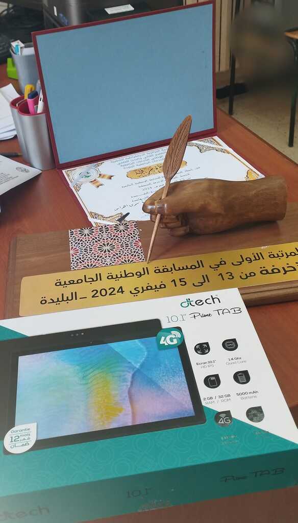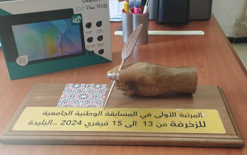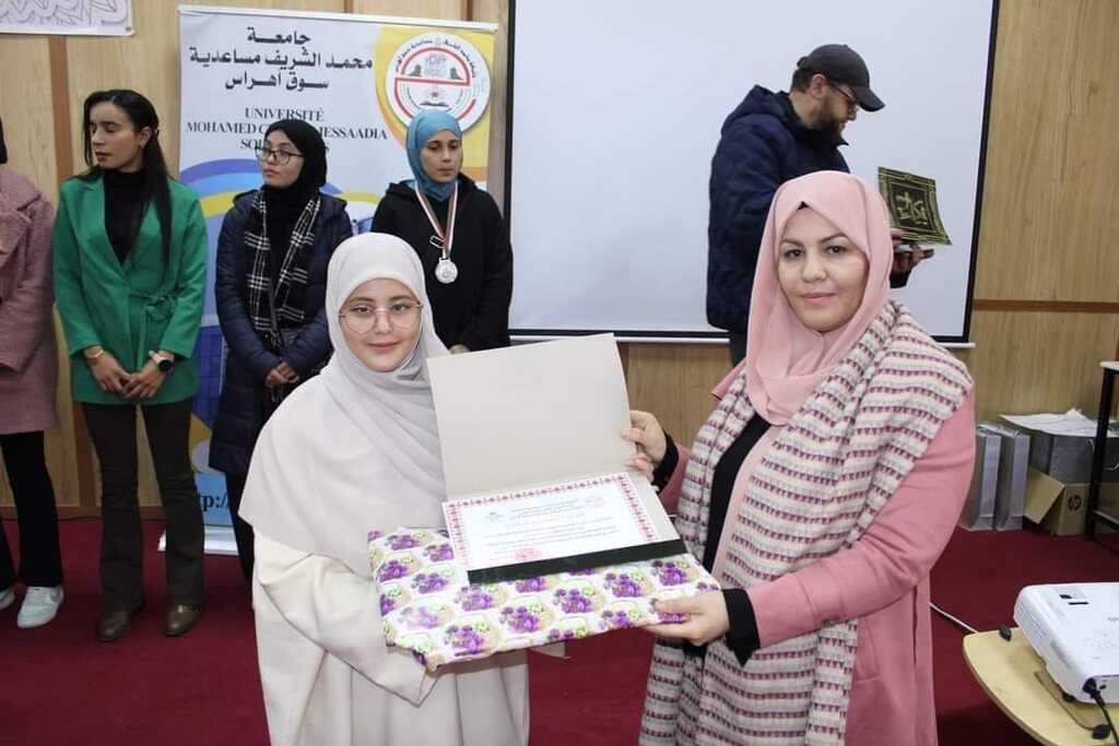 ✨تكريم الطالبة بروك فطيمة من كلية علوم الطبيعة و الحياة على إثر فوزها بالمرتبة الأولى في المسابقة الوطنية للخط العربي تخصص زخرفة.