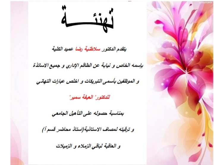 تهنئة بمناسبة تأهيل جامعي للأستاذ العيفة سمير -كلية العلوم الاجتماعية و الانسانية