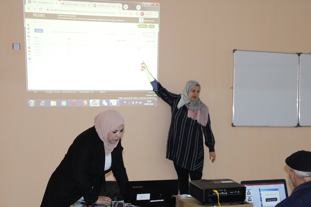 تم تنظيم دورة تكوينية حول النظام المعلوماتي المدمج بروغرس ، من تقديم مهندس الاعلام الآلي لكلية العلوم الاجتماعية و الانسانية و مهندس الاعلام الآلي لكلية الاداب و اللغات . كانت الدورة لفائدة موظفي و اساتذة كلية العلوم الاجتماعية و الانسانية و كلية الاداب و اللغات و بحضور نائب عميد كلية العلوم الاجتماعية و الانسانية المكلف بالبيداغوجيا الاستاذ ياحي عبد المالك