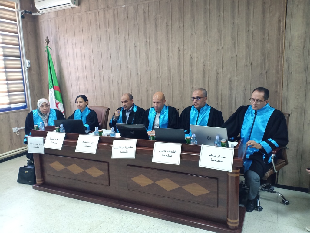 تمت اليوم السبت 27 أفريل 2024 بمقر المكتبة المركزية على مستوى جامعة سوق أهراس مناقشة أطروحة دكتوراه ل، م، د بعنوان: خصوصية المتابعة الجزائية في جرائم الفساد وفق التشريع الجزائري، وذلك بحضور الأساتذة أعضاء لجنة المناقشة المتكونة من: