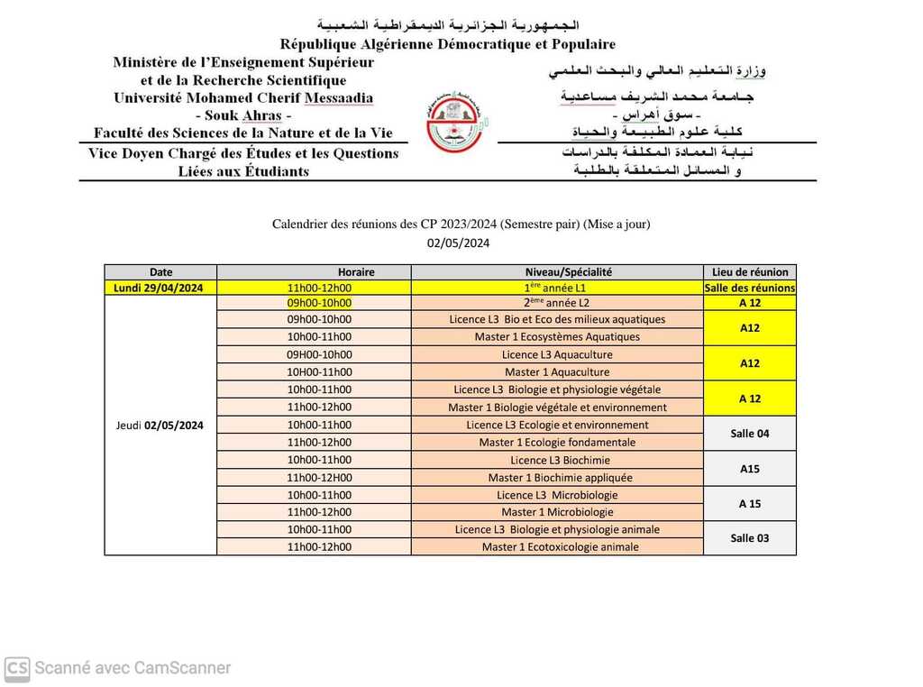 ليكن في علم ممثلي الطلبة أن برمجة الإجتماعات البيداغوجية حسب الرزنامة الموضحة.
