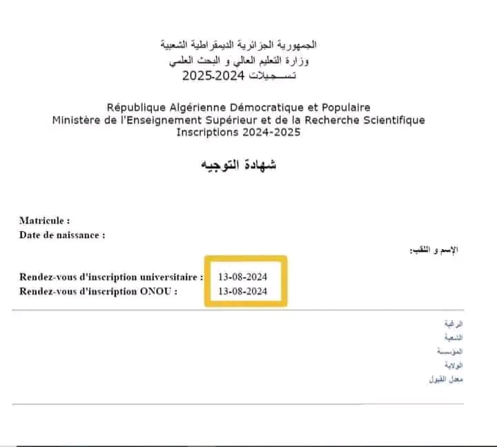 يتوجب على الطلبة الجدد طباعة شهادة التوجيه، لأنها تحتوي على تاريخ دفع حقوق التسجيل الجامعي والخدمات الجامعية.
