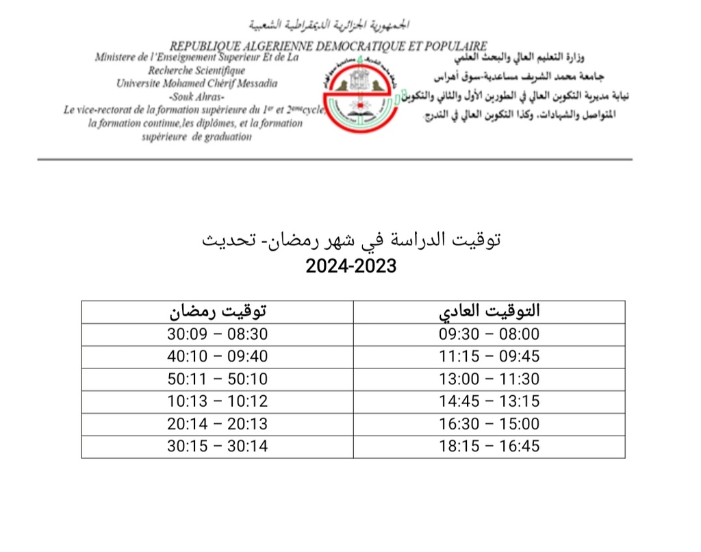 جــــامـعــة محــمــد الشــريف مسـاعــــدية - ســـوق أهــراس ⵜⴰⵙⴷⴰⵡⵉⵜ ⵎⵓⵃⴰⵎⵎⴰⴷ ⴰⵎⴰⵖⵓⴷ ⵎⵙⴰⵄⴷⵢⴰ ⵙⵓⴽⴰⵀⵔⴰⵙ |